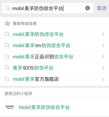 2. 在微信搜索“Mobil™美孚™防伪综合平台”进入主页,或点击微信“扫一扫”扫描产品标签防伪二维码,直接进入识别